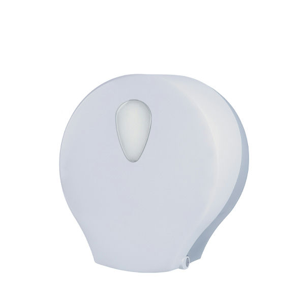 Distributore con serbatoio in plastica a riempimento da 1,2 lt per tutti i tipi di sapone liquido, salvo quelli con microgranuli; sistema di erogazione con leva azionabile a gomito; finestra per il controllo del livello del sapone; serratura antivandalo in metallo; kit d'installazione incluso (viteria in inox e tasselli).