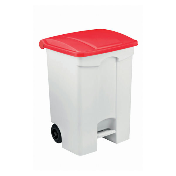 Polipropilene; sistema d'apertura del coperchio in plastica; coperchi disponibili in vari colori per incentivare la raccolta differenziata; maniglia di trasporto posteriore integrata; ampio pedale per utilizzo conforme al metodo HACCP.