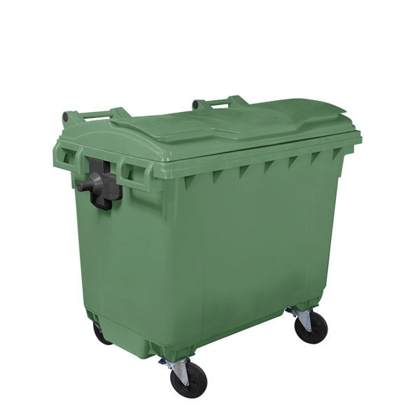 Polietilene ad alta densità (HDPE) con protezione anti UV; assorbe gli urti, resiste ai prodotti chimici e ai grandi sbalzi termici; coperchio con apertura a libro e bordo anti infiltrazione, sede per alloggiamento microchip; ruote in gomma Ø 200 mm; conforme alla norma DIN 30740 / EN 840; pedale in opzione per 240 L; anello fermasacco in opzione per 240 L