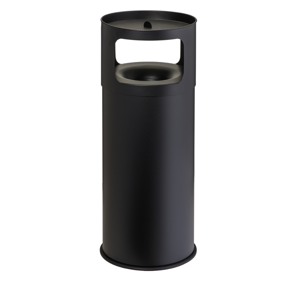 Metallo verniciato con polveri epossidiche; posacenere con griglia (sacco sabbia da 1 kg incluso); gettacarte con coperchio autoestinguente; base in gomma; possibile utilizzo in aree esterne coperte.