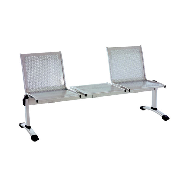 Seduta e tavolo in acciaio microforato; a norma UNI EN 1728/00; ideale per sale d’attesa, aeroporti, stazioni... Il prodotto è venduto smontato, e confezionato in cinque cartoni separati: – 3 cartoni dim. (LxPxH) 480x50x470 mm – 1 cartone dim. (LxPxH) 1650x90x45 mm – 1 cartone dim. (LxPxH) 150x50x40 mm
