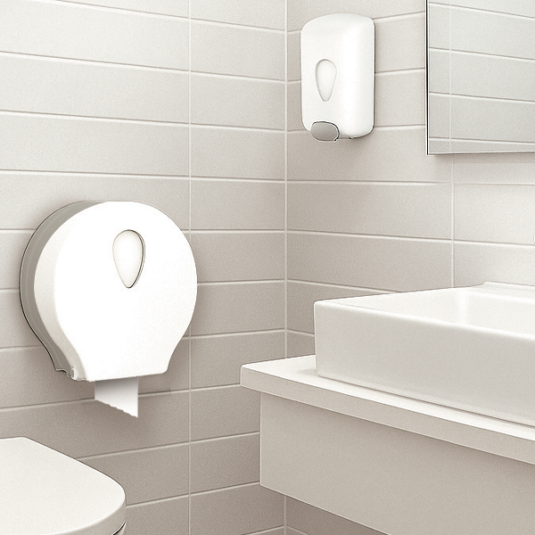 Base e cover in ABS 100% riciclato; funzionamento meccanico con taglio carta in trazione; visore di controllo in policarbonato; diametro max. rotolo: Ø 210 mm; larghezza max. rotolo: 195-205 mm; lunghezza del taglio: 270 mm; resistente agli urti e agli sbalzi di temperatura; chiusura di sicurezza con chiave; viteria e tasselli inclusi.