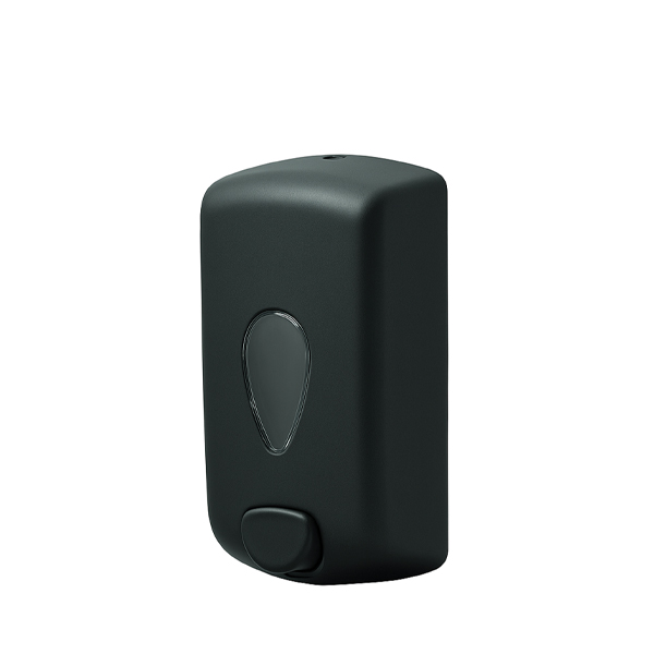 Base e cover in ABS riciclato nero opaco soft touch; base in polipropilene; visore di controllo in policarbonato; serbatoio In plastica a riempimento da 1 L; adatto per saponi liquidi e gel idroalcolici; sistema d’erogazione “push”; design versatile e innovativo; resistente agli urti e agli sbalzi di temperatura; chiusura di sicurezza con chiave; viteria e tasselli inclusi.