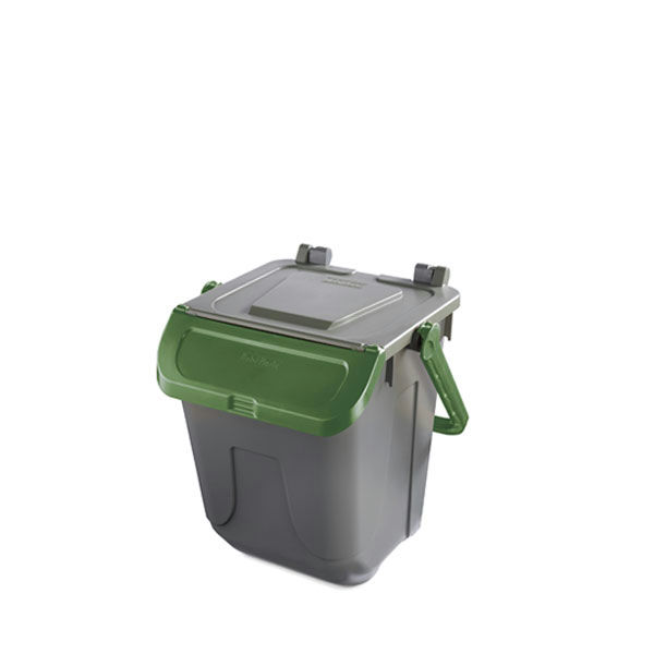 Acciaio galvanizzato con verniciatura poliestere; reggisacco privo di coperchio; cinghia reggisacco in neoprene; fissaggio a muro o su palo; bulloneria inclusa.