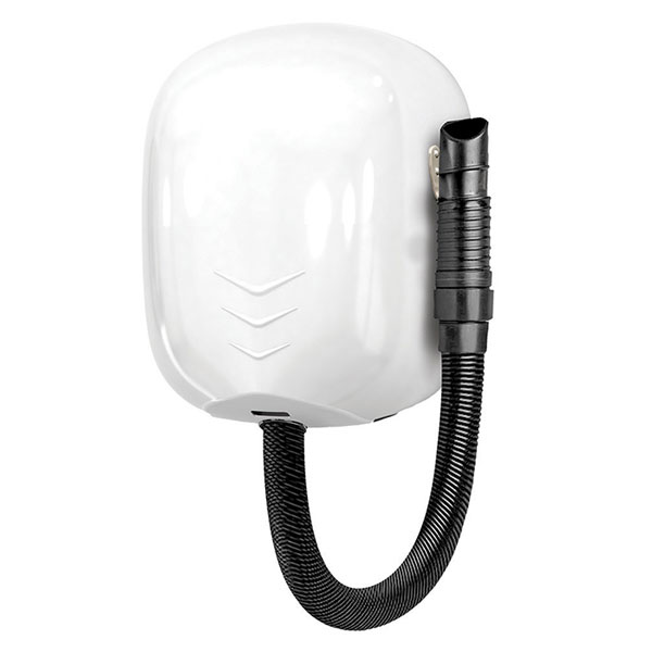 Scocca in polipropilene bianco; motore a spazzola con potenza totale 1.100 W; potenza motore: 550 W; Potenza resistenza: 550 W; voltaggio: 220-240 V - Frequenza: 50-60 Hz; doppio termostato di sicurezza incluso; accensione a pulsante; asciugatura temporizzata (30 sec.-3 min.); tubo estensibile antistrappo (L: 60 - 120 cm); isolamento/grado protezione elettrica: Classe I-IP20; ideale in location ad alto traffico d’utenza.