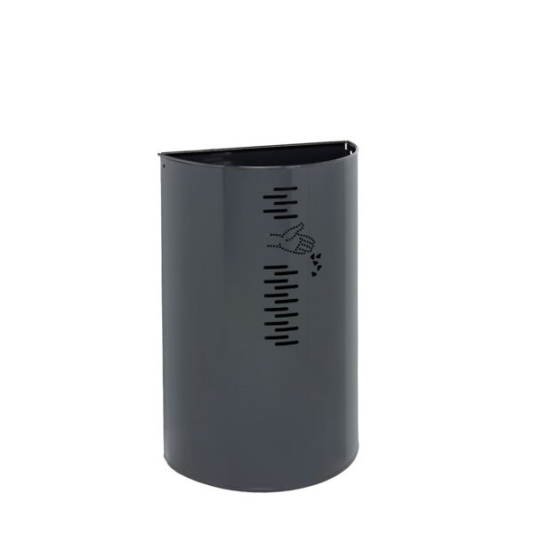Brushed s.steel or black powder epoxy coated steel body; removable inner bucket with handle (4 L); vandal proof key lock system, marked with cigarette symbol; rubber pads to ensure isolation from ground; ground fixing points (fixing hardware not included).