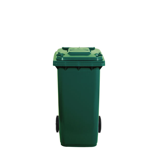 HDPE in an injection moulding process with UV treatment; water, frost and heat resistant, also withstands many chemicals; lid with book opening and anti-infiltration edge, seat for microchip housing; rubber wheels Ø 200 mm; manufactured according to DIN 30740 / EN 840; pedal for 240 L, optional; sack holder for 240 L cont. sold separately.