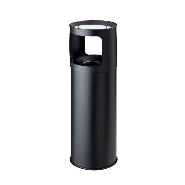 Powder epoxy coated steel; ashtray with grid (1kg sand included); auto-extinguisher lid; plastic bottom ring prevents damage to the floor; suitable for use in covered outdoor areas.