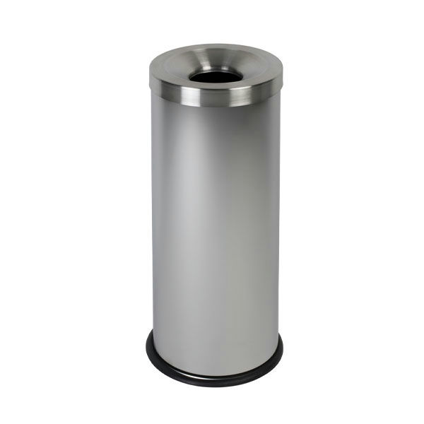 Polyester powder coated steel body; bag held securely by elastic belt; wall or post mounted fixing; fixing hardware included.
