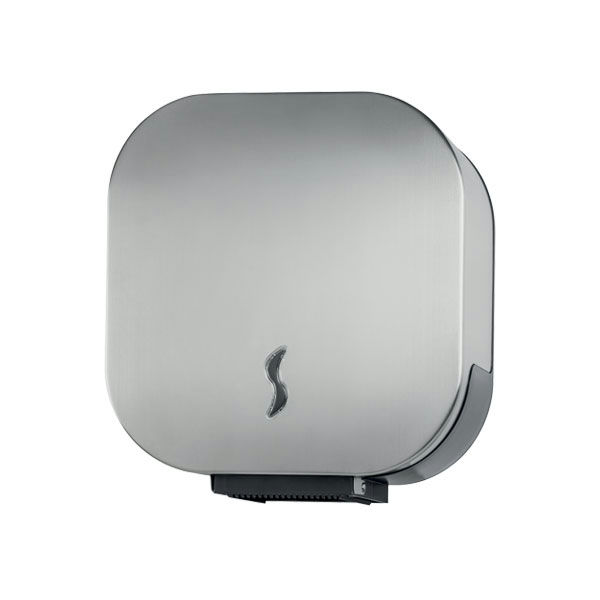 Pour papier hygiénique en rouleau 200 mt (max. Ø 230 mm); mandrin rectangulaire en inox, pour limiter le déroulement du papier; diagonale mandrin: 55 mm; lames ciselées sur 3 cotés pour faciliter la découpe du papier; fenêtre de contrôle du papier restant en plastique; fermeture sécurisée par serrure à clé en métal; design sobre et élégant; visserie en inox fournie.