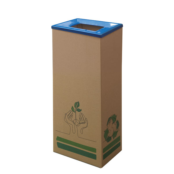 Corps en carton 100% recyclable; disponible en plusieurs couleurs pour encourager le tri sélectif; installation à poser; ; en option, étiquettes en vinyle prédécoupées pour le tri sélectif.