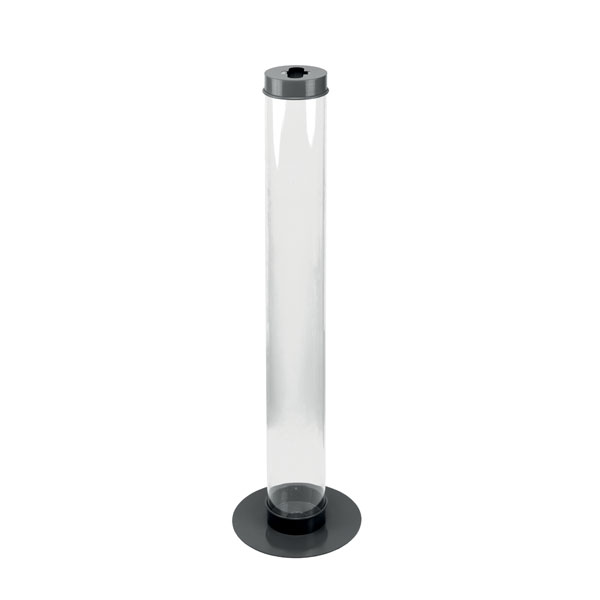 Tube en polycarbonate transparent; base et couvercle en acier laqué; idéal pour les piles usagées; contrôle visuel permanent du contenu.