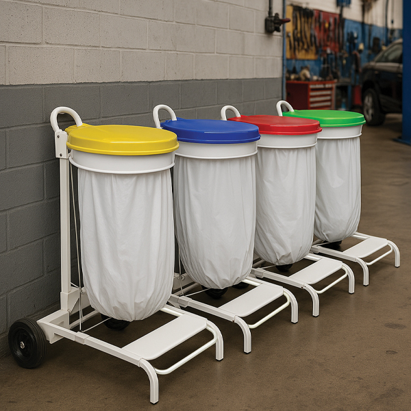 Support sac mobile a pedale et couvercle en couleur