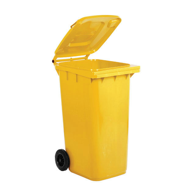 Structure en acier tubulaire blanc; on s’utilise avec un sac de 110 L; quatre pieds avec protection en caoutchouc; le sac est soutenu par tension; plaque de signalisation neutre en option; personnalisable avec des étiquettes vendus séparément.