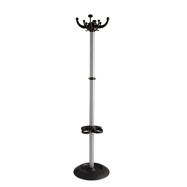 Structure en acier poudré; base en polypropylène avec porte-parapluies; 8 crochets en polypropylène.