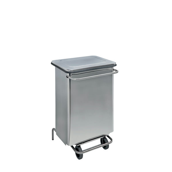 Corps en inox brossé; couvercle étouffoir en acier poudré époxy ou inox; bride de fixation murale en 4 points en acier poudré époxy ou inox; vidage par rotation du bac.
