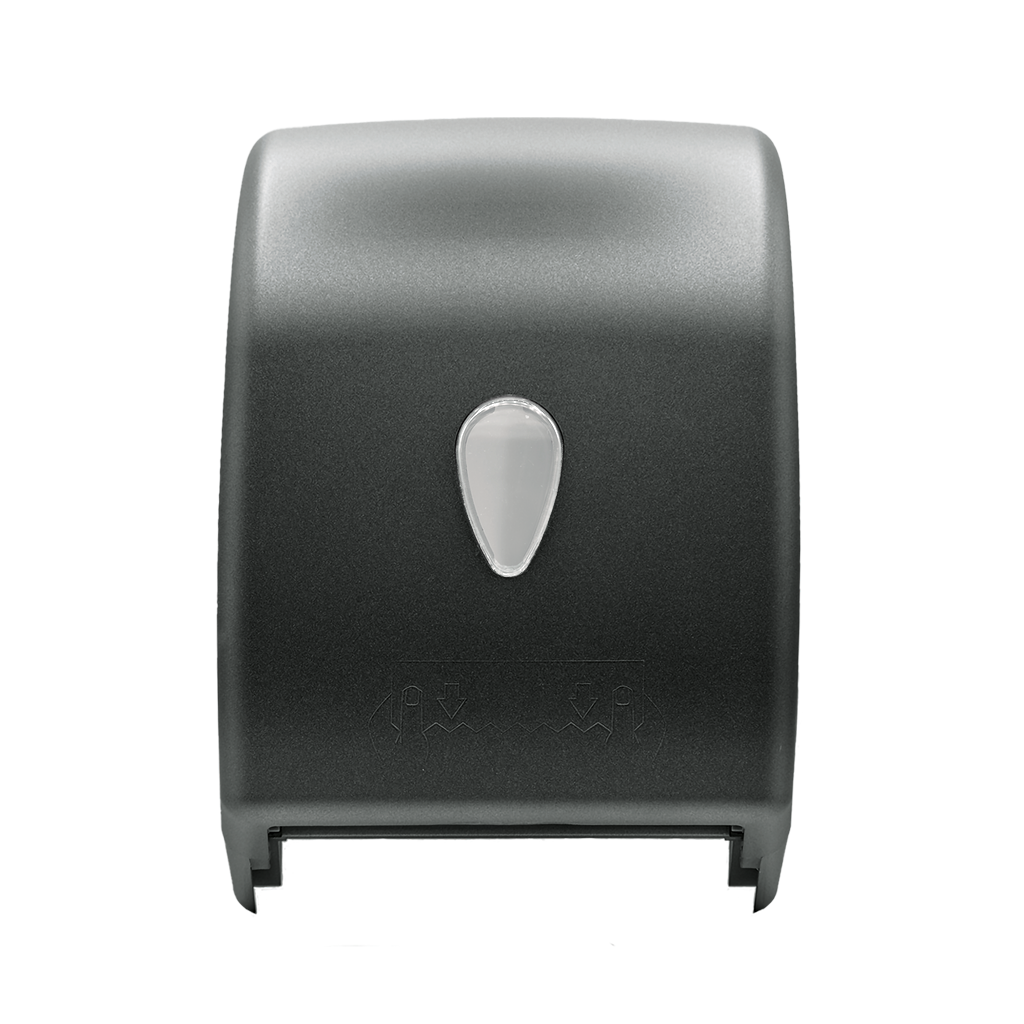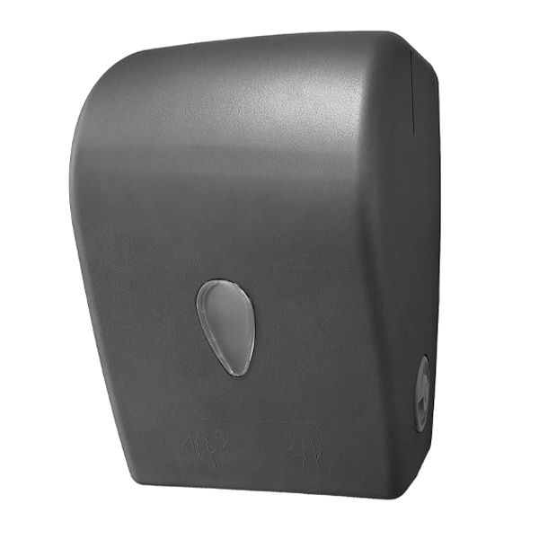 Corps et façade en ABS recyclé finition peinture au graphite; diamètre maximal du rouleau vers. MAXI : Ø 190 mm; diamètre maximal du rouleau vers. MINI : Ø 120 mm; conception polyvalente et innovante; résistant aux chocs et à la température; serrure de sécurité avec clé; visserie fournie.