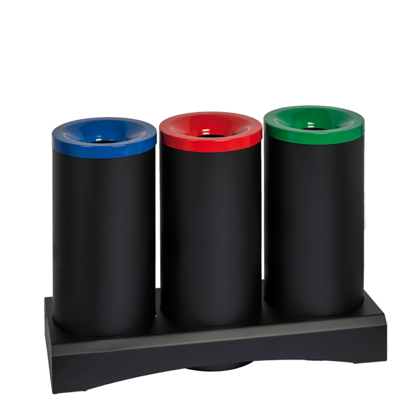 Ensable composé de trois corbeille antifeu et d’un socle; corps, couvercle et socle en acier poudre époxy; couvercles couleurs pour faciliter le tri sélectif; couvercles antifeu, arête la combustion et évite la propagation du feu; capacité: 3x50 lt ou 3x70 lt.
