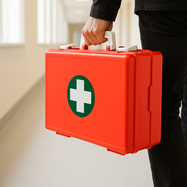 Mallette en polypropylène; poignée pour un transport facile; support mural inclus; kit premiers secours non inclus.